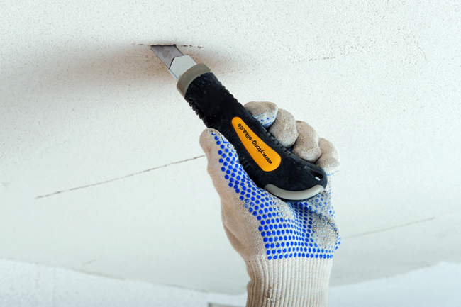 Pri nerovných povrchoch stropov sa povrch nalepených dosiek prebrúsi brusným hladidlom. Prach po brúsení sa odstráni mokrou štetkou.