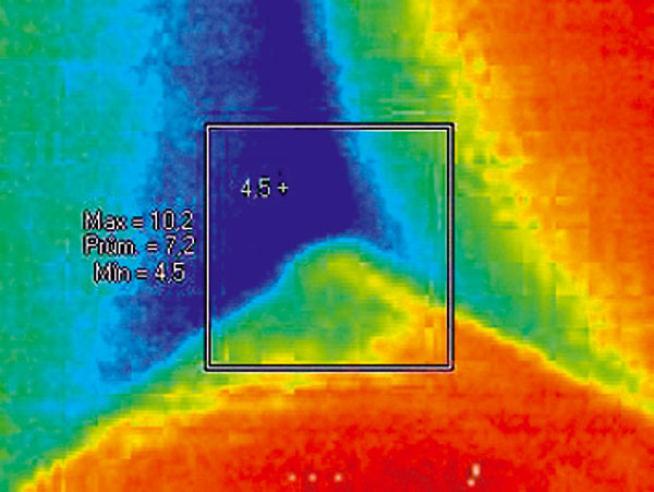 Termovíznym meraním sa potvrdila nízka vnútorná povrchová teplota v nadpraží okien, na miestach napojenia nezateplených lodžiových dosák i v nároží pri vstupných dverách na lodžii. Snímky z termovíznej kamery poskytli nielen prehľad plošného rozloženia teplôt na vnútornom i na vonkajšom povrchu sledovanej konštrukcie, ale tieto snímky napomohli aj pri overení skladby nadpražia.