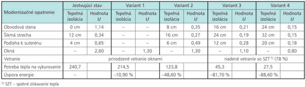 Tab. Účinnosť opatrení energeticky efektívnej modernizácie referenčného rodinného domu v klimatickej oblasti Bratislavy