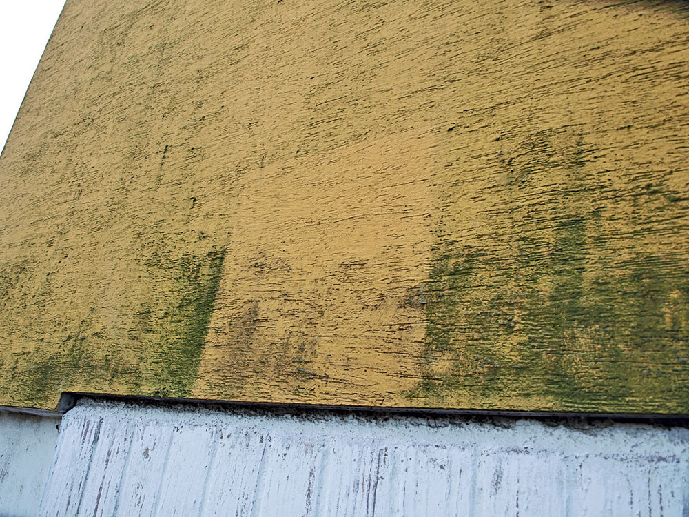 Sivé až čierne lokálne povlaky a biologické nánosy na fasáde súvisia takmer vždy s technologickými nedostatkami. Ide najmä o nedostatky v riešení utesnenia škár ostení a parapetov okenných a dverných otvorov. Únik teplého vzduchu z interiéru, kondenzácia na povrch fasády je vhodným a dostatočným primárnym zdrojom vlhkosti predovšetkým na kolonizáciou spórami plesní.