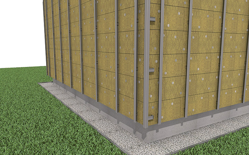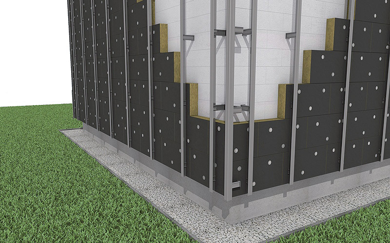 Odvetrávaná fasáda so zvislým oceľovým roštom