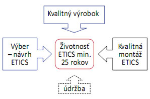 Pri ETICS schvaľovaných podľa európskych harmonizovaných technických špecifikácií sa musí okrem iného pozitívne overiť predpoklad životnosti minimálne 25 rokov. Z praktického života je známe, že medzi predpokladom a realitou často býva značný rozdiel. Dá sa teda docieliť, aby skutočná životnosť ETICS zodpovedala predpokladu? Áno, treba však nielen použiť ETICS, ktorý vyhovuje všetkým súvisiacim požiadavkám, ale aj zabezpečiť správny výber, správne zabudovanie a zodpovedajúcu údržbu a používanie.