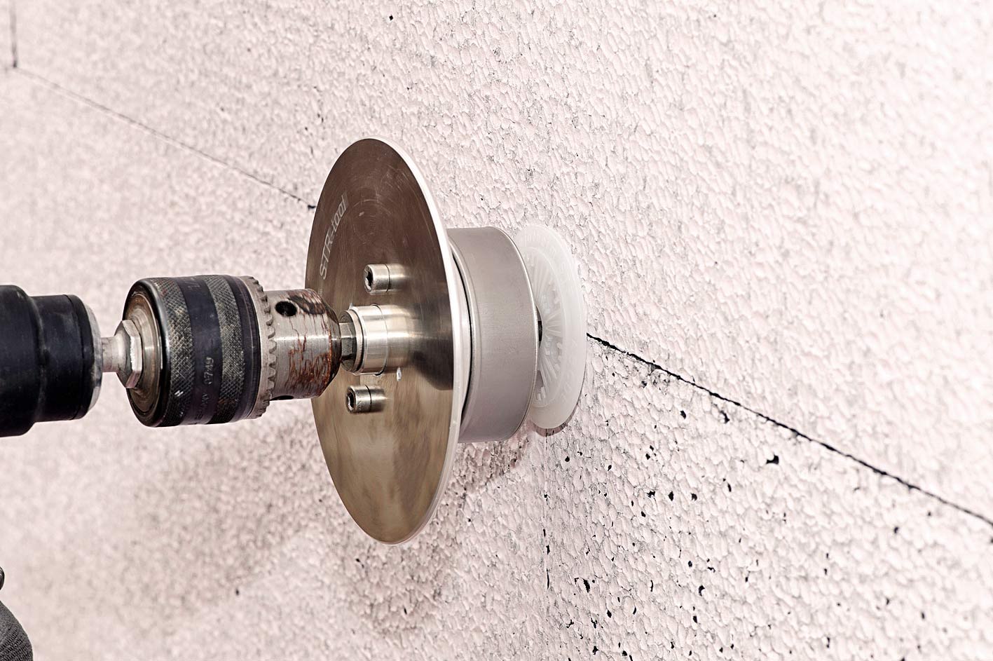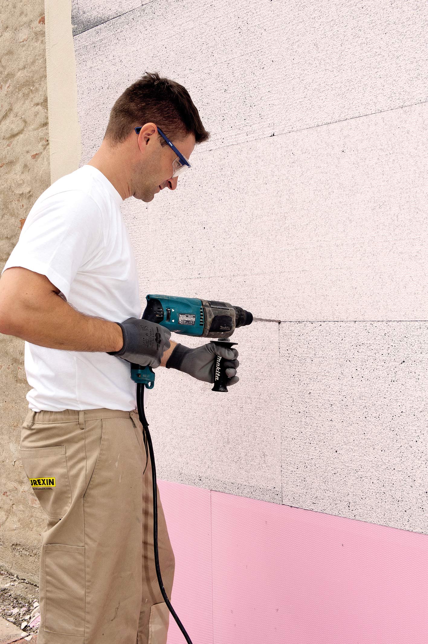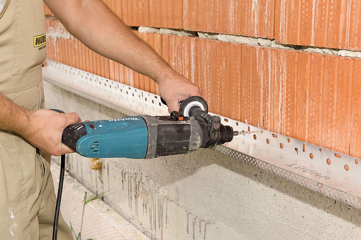 Do poréznych materiálov sa bez príklepu vyvŕtajú otvory na umiestnenie kotiev. Priemer vrtáka je 8, resp. 10 mm (podľa priemeru drieku kotvy). Počet a druh kotiev závisí od vlastností podkladu a musí sa stanoviť statickým výpočtom.
