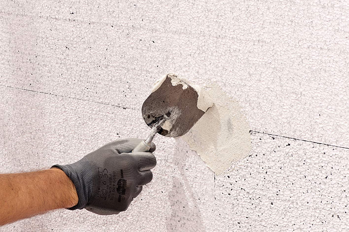 Odporúča sa povrch minimálne narušiť murárskym kladivom. Tzv. vysprávky by sa mali realizovať polymércementovou maltou. Časti fasády s veľkými nerovnosťami sa odporúča celoplošne vyrovnať. Pri úprave klampiarskych výrobkov treba počítať s predsadením konečnej roviny fasády (vysunutie parapetných dosiek, oplechovanie atiky, ríms).