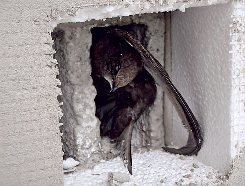 2.    Ak na budove hniezdia dážďovníky, je nutné v závislosti od aplikovanej technológie práce oddialiť na obdobie po vyhniezdení vtákov. Hniezdne obdobie trvá od 1. apríla do 31. júla, v prípade dažďovníkov je posunuté od 15. apríla do 15. augusta. Po tomto termíne možno v prípade výskytu vtákov realizovať zateplenie, avšak je dôležité práce uskutočniť tak, aby nedošlo k zániku hniezdisk (bod 3). Ak odborník vykonávajúci prehliadku určí, že práce sa dajú realizovať aj počas hniezdenia a práce pre hniezdiace vtáky nepredstavujú rušivý prvok, nie je nutné ich zastaviť. Závisí to však od viacerých faktorov, ako napríklad od výšky lešenia, či sa na lešení používa sieťka, zachovania vetracích otvorov a podobne. Aj pri prácach, ktoré môžu prebiehať počas hniezdneho obdobia, je dôležité aplikovať uvádzané pravidlá.