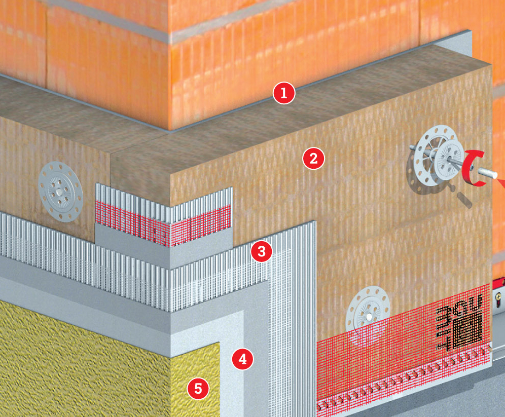 Základom kontaktného tepelnoizolačného systému je dvojvrstvová doska z minerálnej vlny novej generácie s pozdĺžnou orientáciou vlákien, vďaka čomu má systém zvýšenú odolnosť proti nárazu a lepšie tepelnoizolačné vlastnosti pri menšej hrúbke. Tvarová stálosť zabezpečuje jednoduchú montáž izolácie so zachovaním priedušnosti stien. Na povrchovú úpravu sa odporúča použiť samočistiace omietky, ktoré zabránia usadzovaniu nečistôt na povrchu fasády a sú vhodné aj do náročného prostredia.