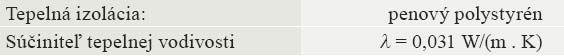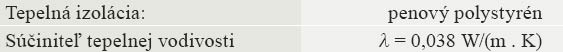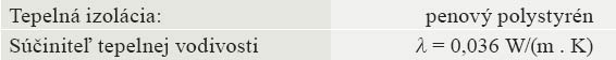 - tepelnoizolačné dosky z penového polystyrénu, napr. EPS 70 F, EPS 80 F, EPS 100 F (hrúbka až do 25 cm)