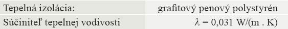 - tepelnoizolačná vrstva na báze tzv. sivého polystyrénu s obsahom grafitu – EPS 70 NEO