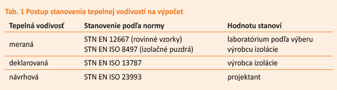 Návrhová hodnota súčiniteľa tepelnej vodivosti sa získa buď: