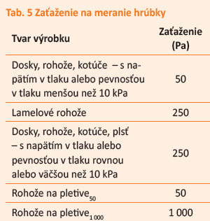 • prekročenie deformácie 5 % pod zaťažením 500 Pa (tzn. pri vzorke s hrúbkou 100 mm je to 5 mm),