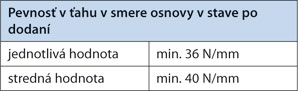 Pevnosť sklenenej sieťoviny v ťahu v stave po dodaní