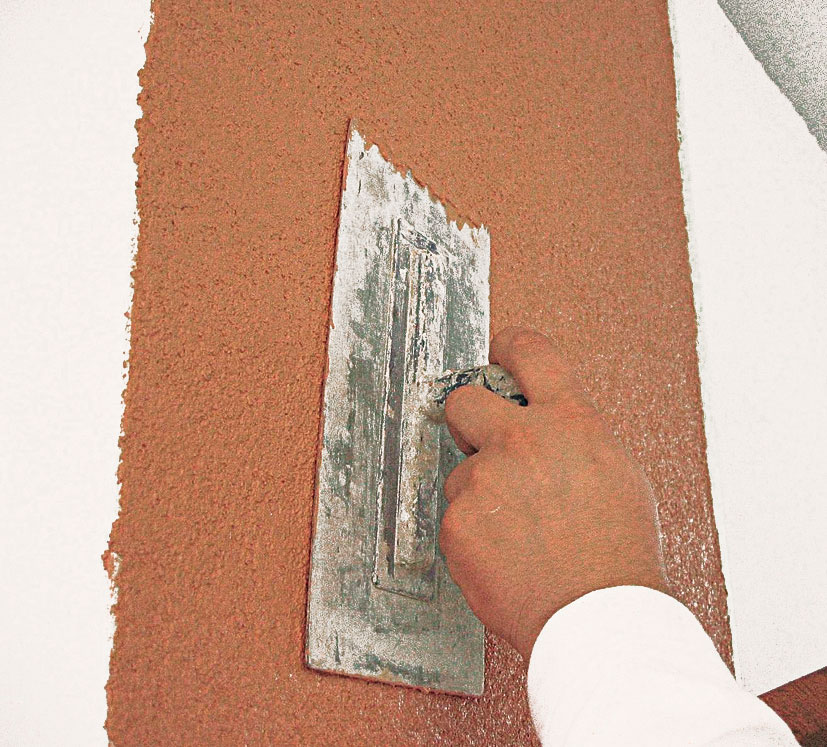 Tesne pred nanášaním omietky sa obsah vedra premieša elektrickým miešadlom s nízkymi otáčkami. Pri hustej konzistencii je možné omietku upraviť malým množstvom vody (maximálne 1 %, t. j. približne 0,2 l). Omietka sa nanáša na podklad antikorovým hladidlom rovnomerne bez prerušenia. Následne sa povrch upraví požadovaným spôsobom.