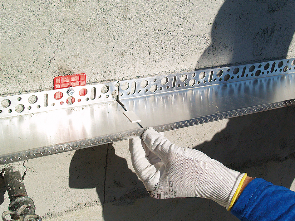 Pred vytvorením výstužnej vrstvy sa osadia všetky ukončovacie, dilatačné, tesniace lišty a zosilňujúce vystuženia. Najskôr sa vytvára výstužná vrstva na nárožiach, hranách stavby, osteniach a nadpražiach okolo otvorových výplní a na ďalších odporúčaných plochách podľa projektovej dokumentácie. Na to sa použijú plastové alebo nekorodujúce rohy s už zabudovanou sklovláknitou tkaninou. Na miestach dilatačných škár sa použijú špeciálne dilatačné profily s nakašírovanou sklovláknitou tkaninou. Pri ich napojení sa musí dodržať zásada prekrývania zdola nahor, a to v minimálnej dĺžke 20 mm. Na miestach spojov rohových profilov sa musí tkanina dôkladne preložiť minimálne o 100 mm. V oblasti rohov okien a dverí je potrebné vyhotoviť diagonálne vystuženie s rozmermi výstužne sklotextilnej mriežky min. 200 × 300 mm, odporúča sa rozmer 250 × 500 mm.