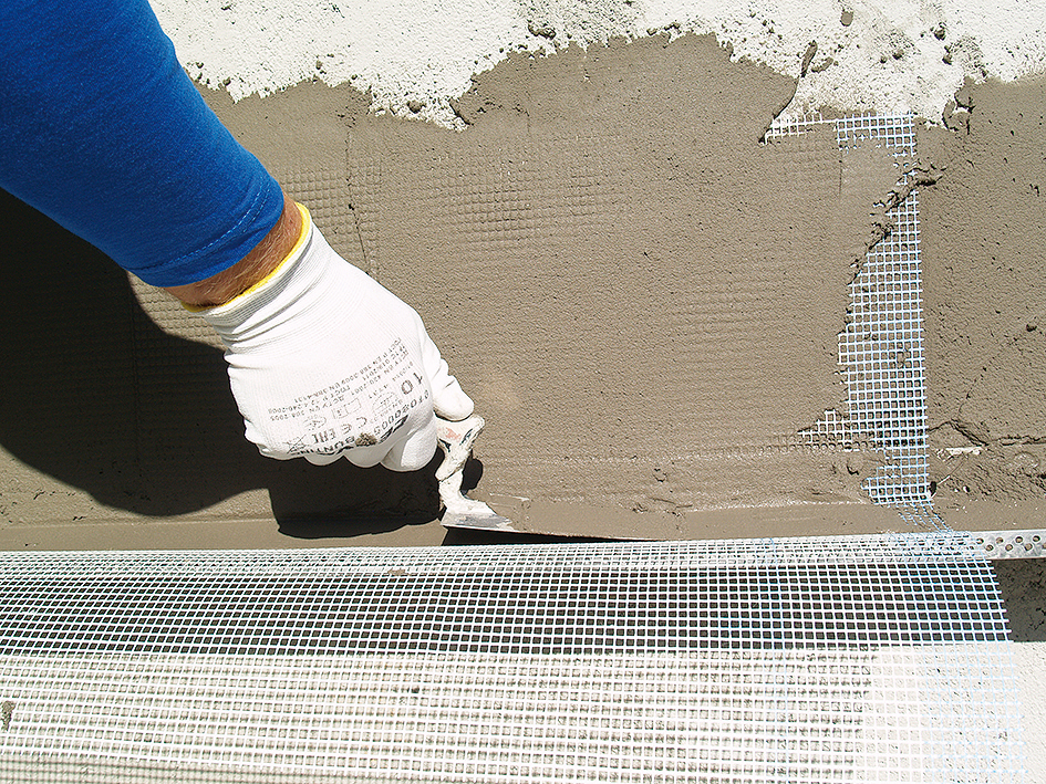 Na nárožia, hrany stavby, ostenia a nadpražia okolo otvorových výplní sa osadia do lepiacej malty plastové alebo nekorodujúce rohy so zabudovanou sklovláknitou tkaninou.