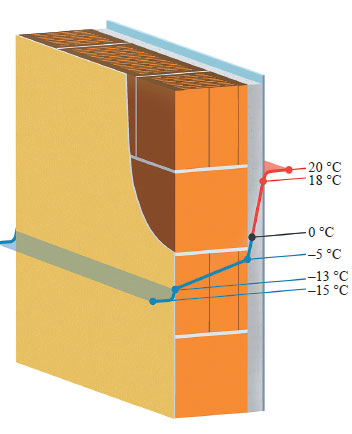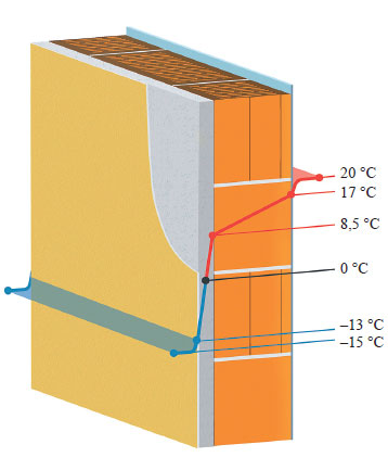 Obvodová stena prispieva k akumulácii tepla v obmedzenej miere. Bod mrazu (0 °C) sa nachádza v murive. Zmeny teplôt a tlak vodných pár môžu vyvolať kondenzáciu vodnej pary, ktorá v zime zamŕza. Zmeny objemu môžu spôsobiť trhlinky a postupné narušenie celistvosti muriva.